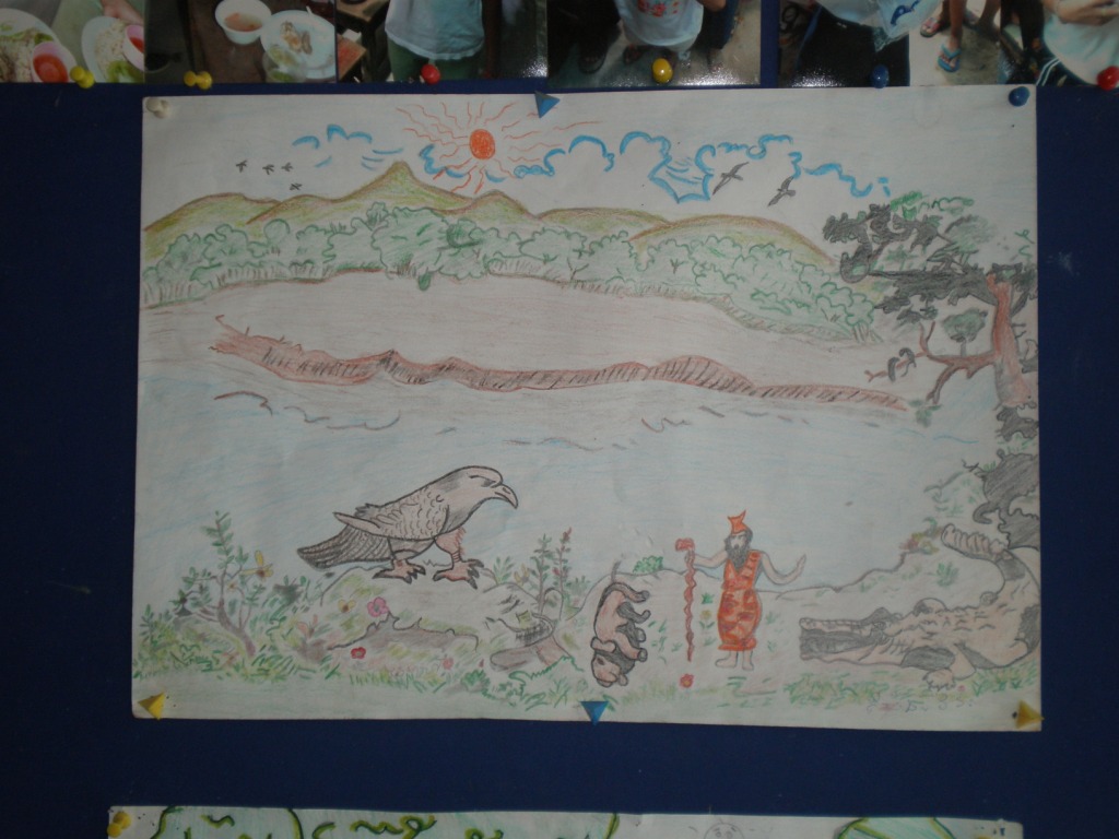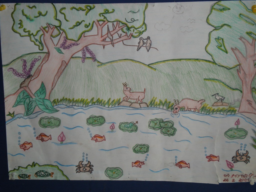 以前にもこのブログで書きましたが、吹田千里ライオンズクラブの方々に、お絵かき帳や色鉛筆をいただきました。みんな、とても大切に使っています。そして、センターの中でも、絵の上手さに定評のあるカッカダーがカンボジアの昔話を絵に書きました。どうでしょう?