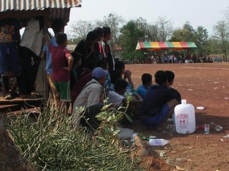 外は暑いので、みんな日陰に隠れての応援。