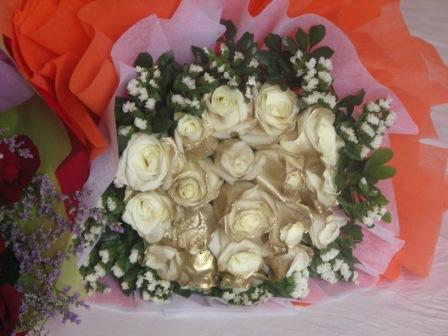 学生からたくさん花をもらいました。