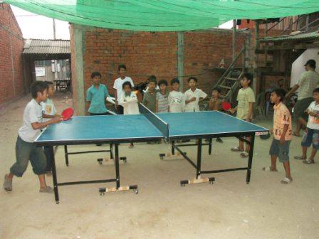 ↑ 支援者の方にいただいたお金で買った卓球台です。