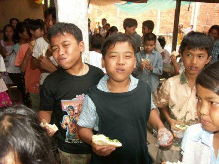 カンボジアのゲームに加えて、パン喰い競争(パンを果物に代えて)。