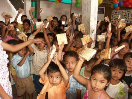 整列をさせても、100人を超える子どもに、プレゼントを配るのは大変。