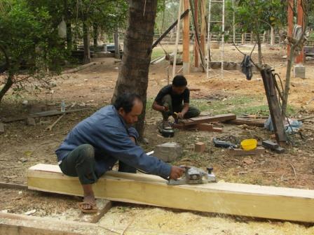カンボジア独特の高い門の上まで、一旦持ち上げなきゃいけないんだから、