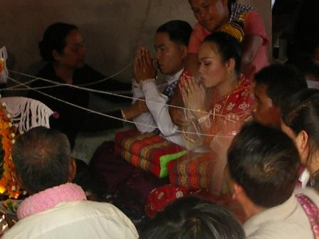 ↑ ラオスの結婚式の時にするバーシー。