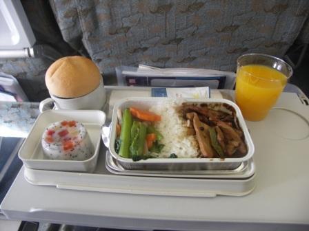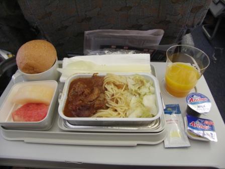 機内食は、これから、行く土地の食べ物がほとんどで、